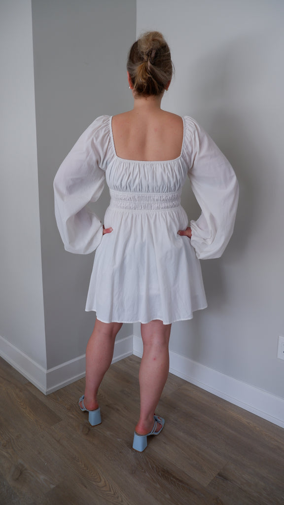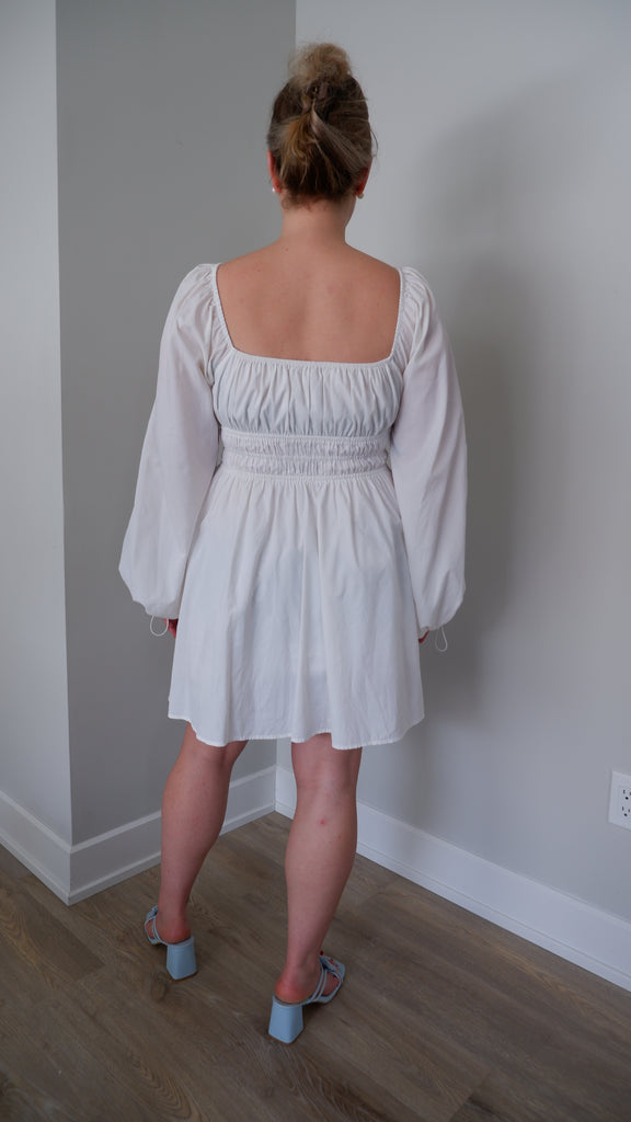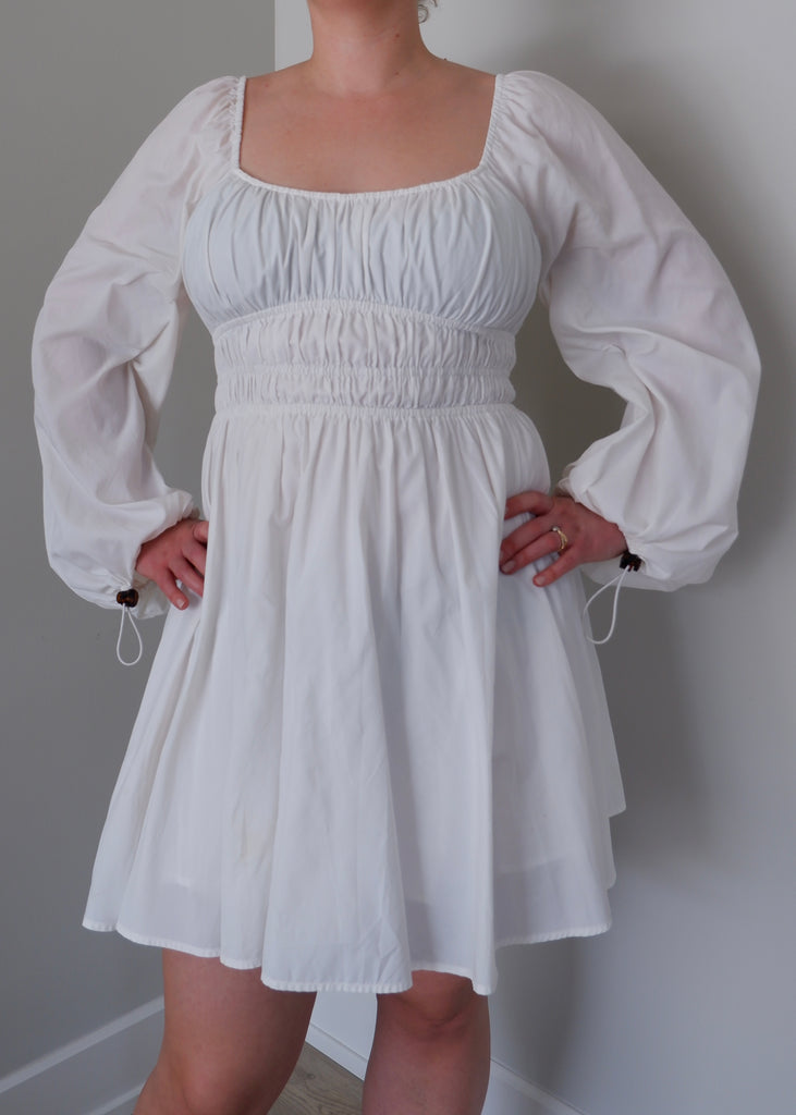 STAUD White Smocked Mini Dress - L/XL