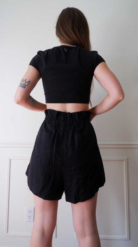 House of Harlow Black Linen Paperbag Shorts - M/L