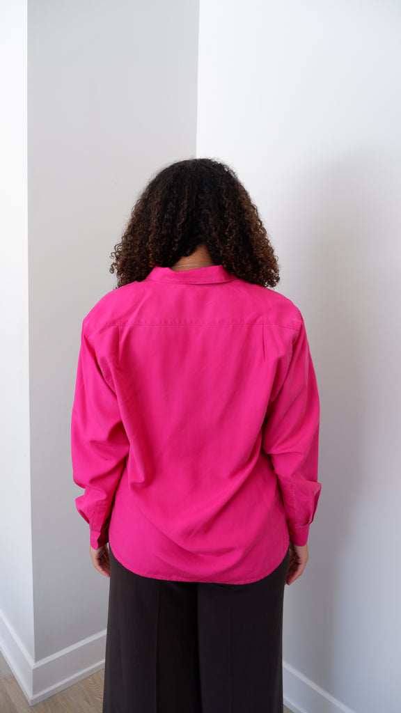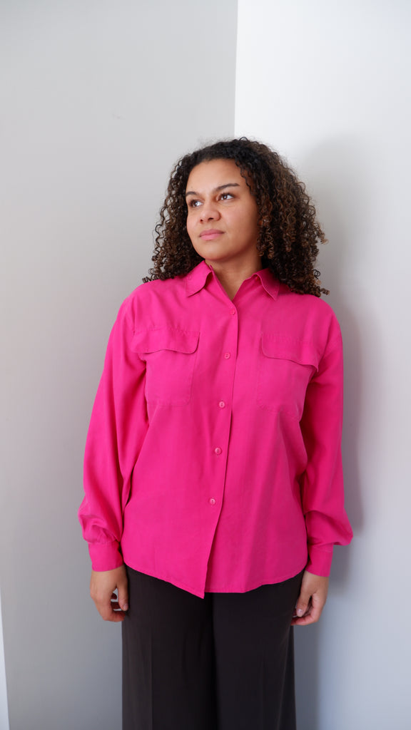90s Fuchsia 100% Silk Blouse - M/L/XL