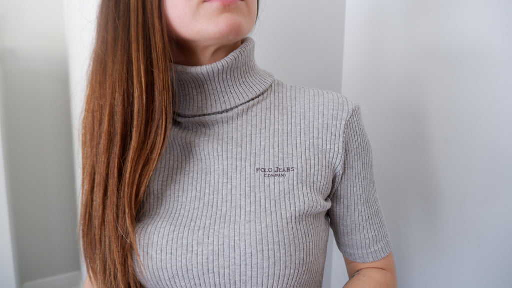 90s Polo Ralph Lauren Ribbed Turtleneck, Heather Grey - S