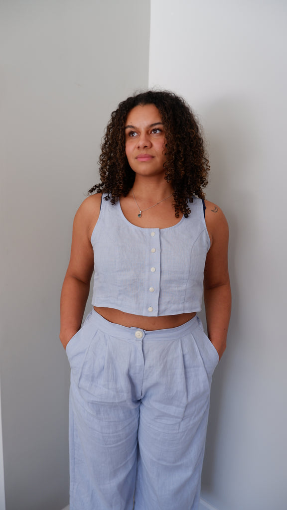 Ilana Kohn Baby Blue Linen Crop Tank - 10