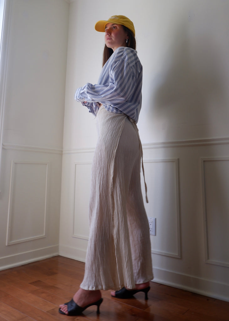 Costa Santa Handmade Textured Cream Wrap Pants - S/M/L