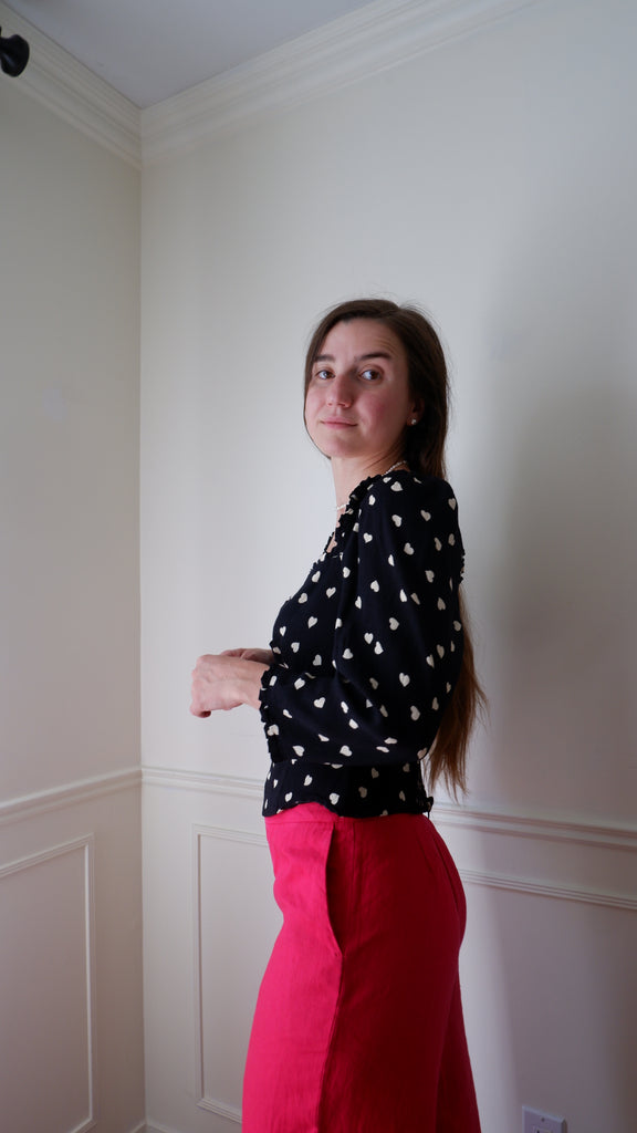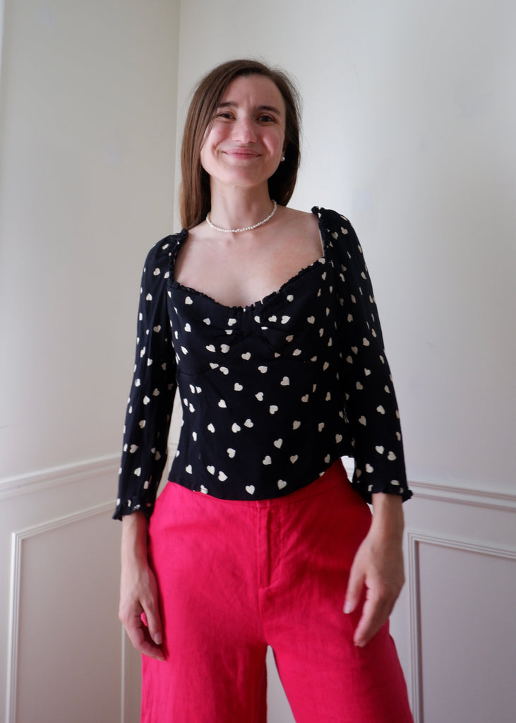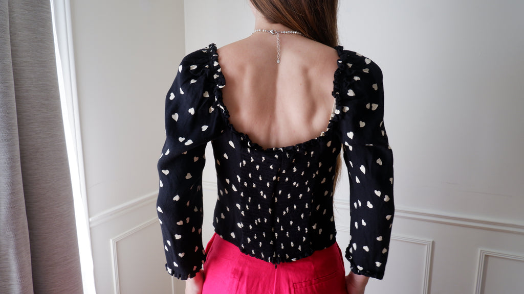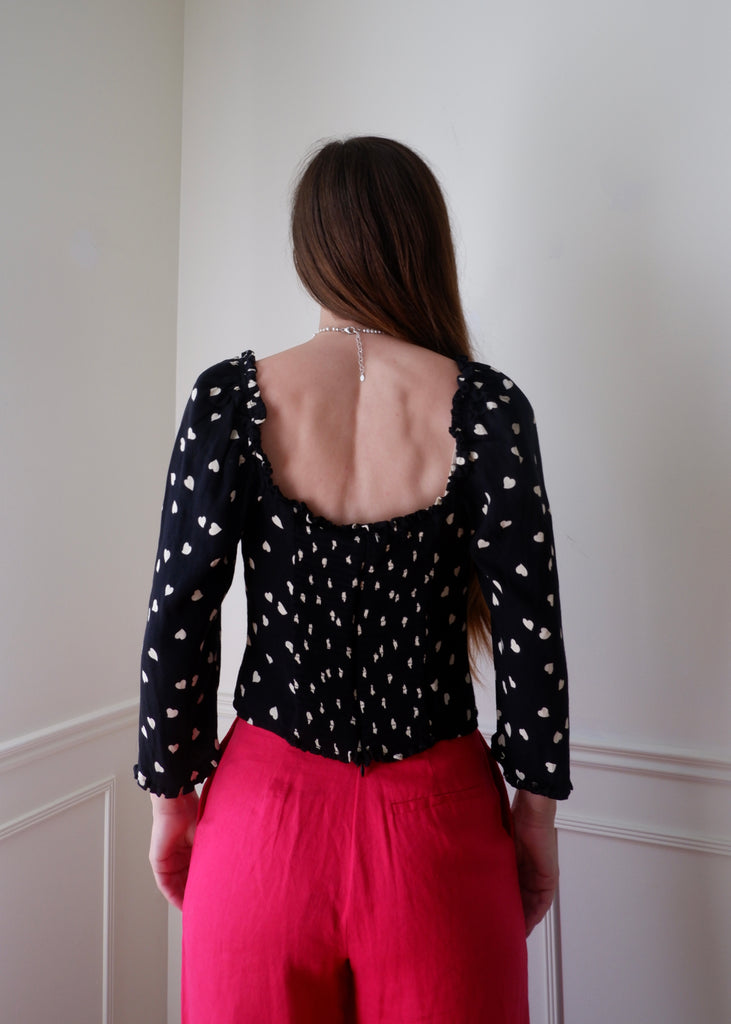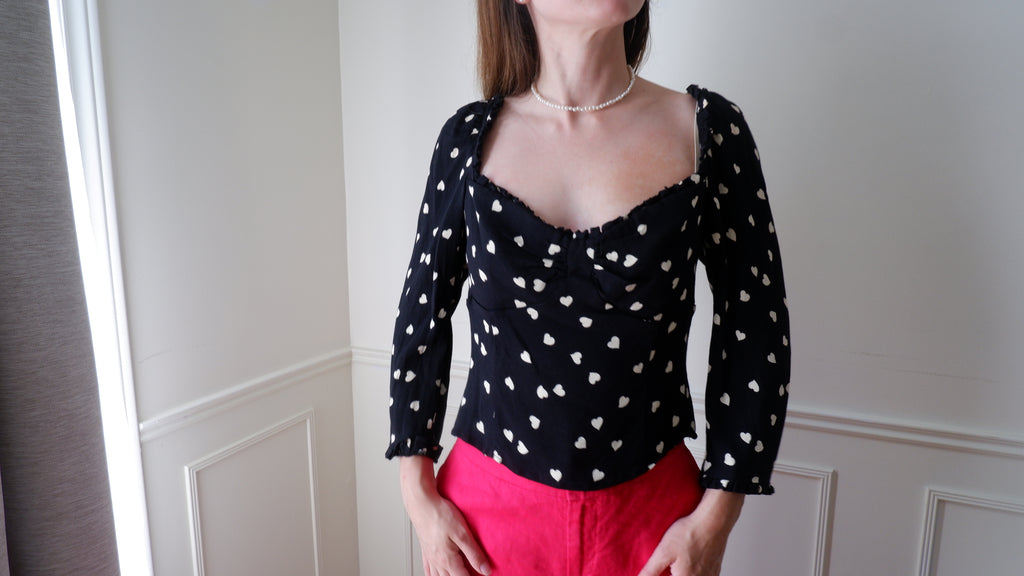 Reformation Mariah Blouse, B&W Hearts - M/L/XL