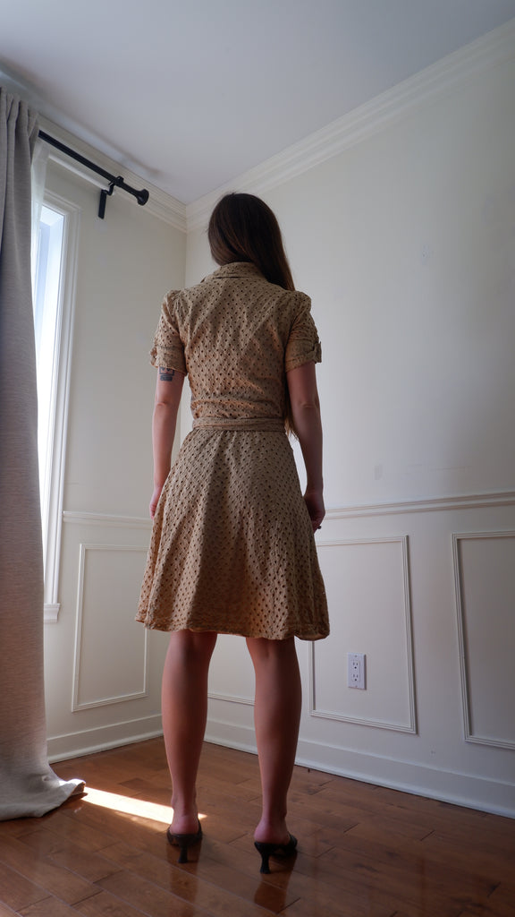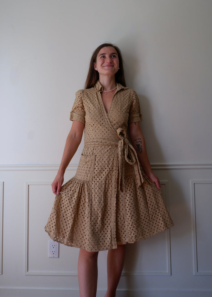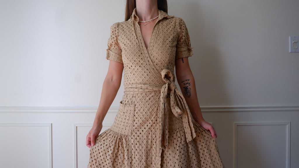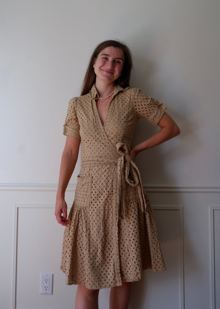 Y2K DVF Camel Eyelet Wrap Dress - S