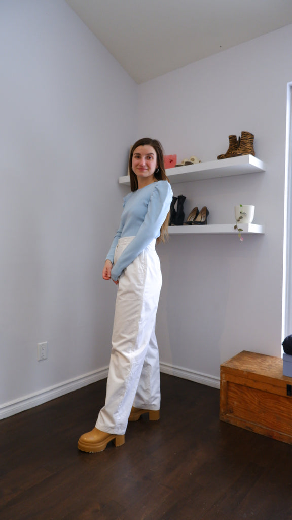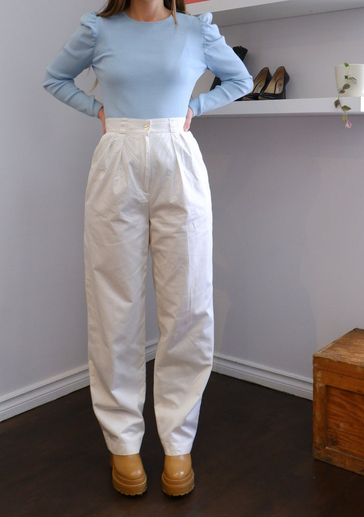 80s Alfred Sung White Straight Leg Pleated Trousers - 6