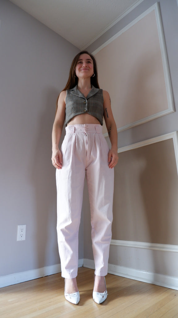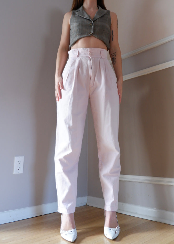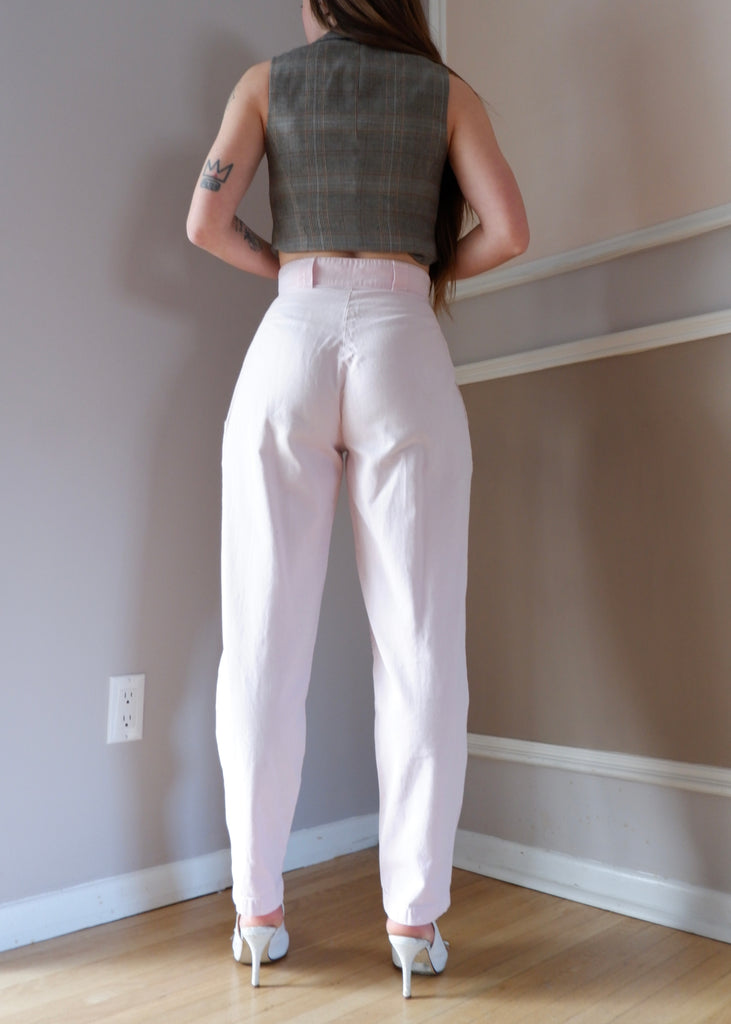 80s Baby Pink Pleated Balloon Trousers - 4/6
