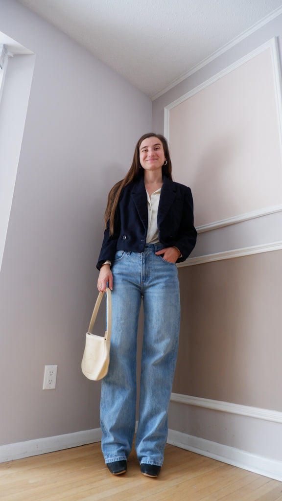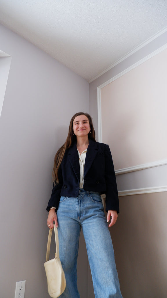 80s Navy Cropped Wool-Blend Blazer - M/L