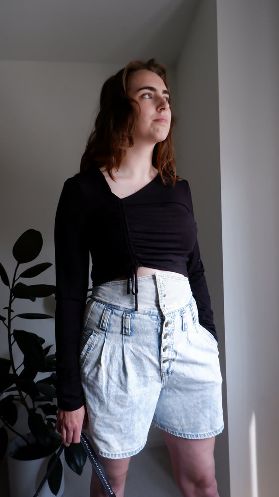 Condition 7/10 2 stains at waistband — look like coffee stains but did not come out in the 2 wash cycles I put them through. Some distressing throughout.