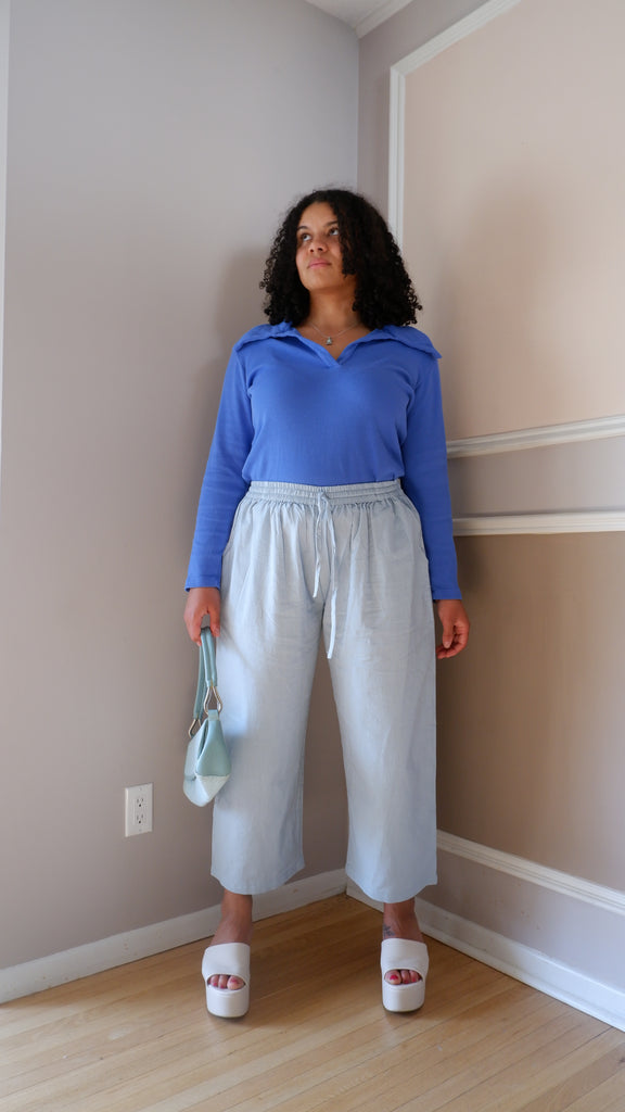 90s Baby Blue Drawstring Cropped Pants - S/M