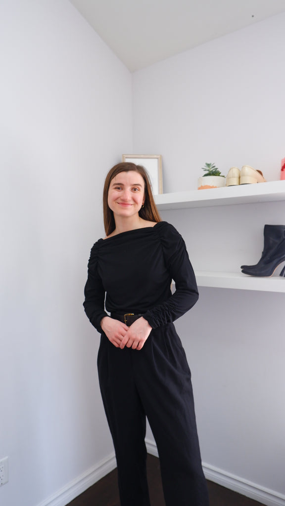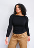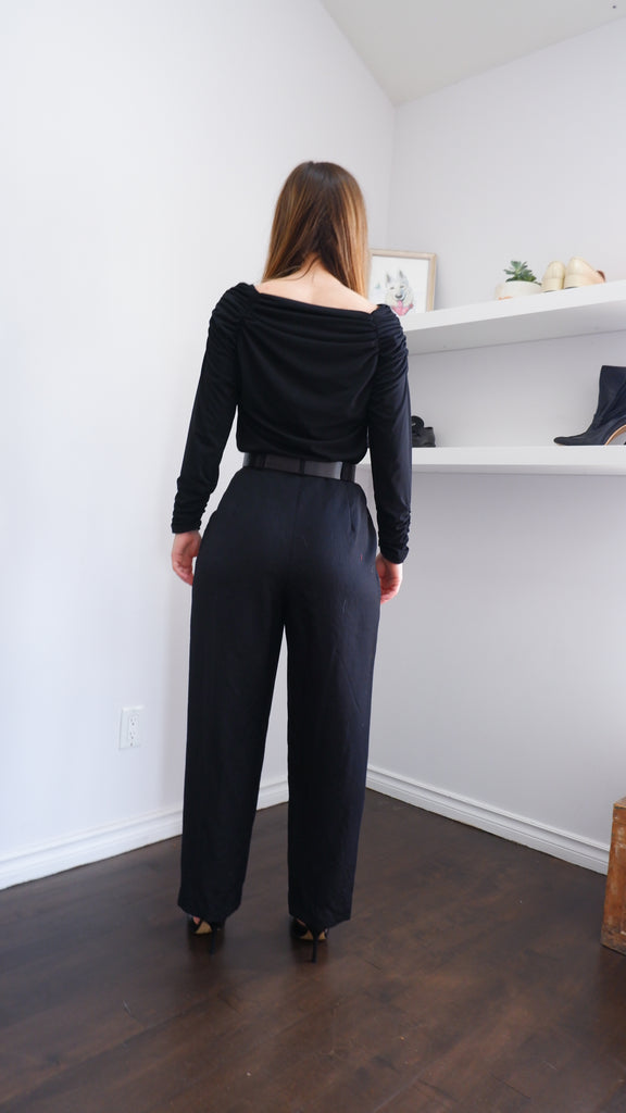 90s Black Ruched Squared Neck Top