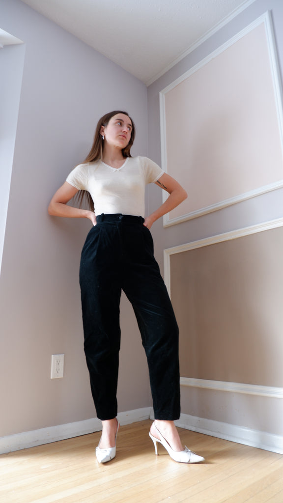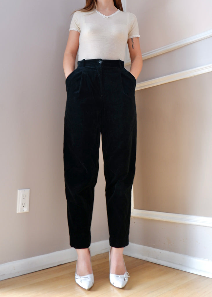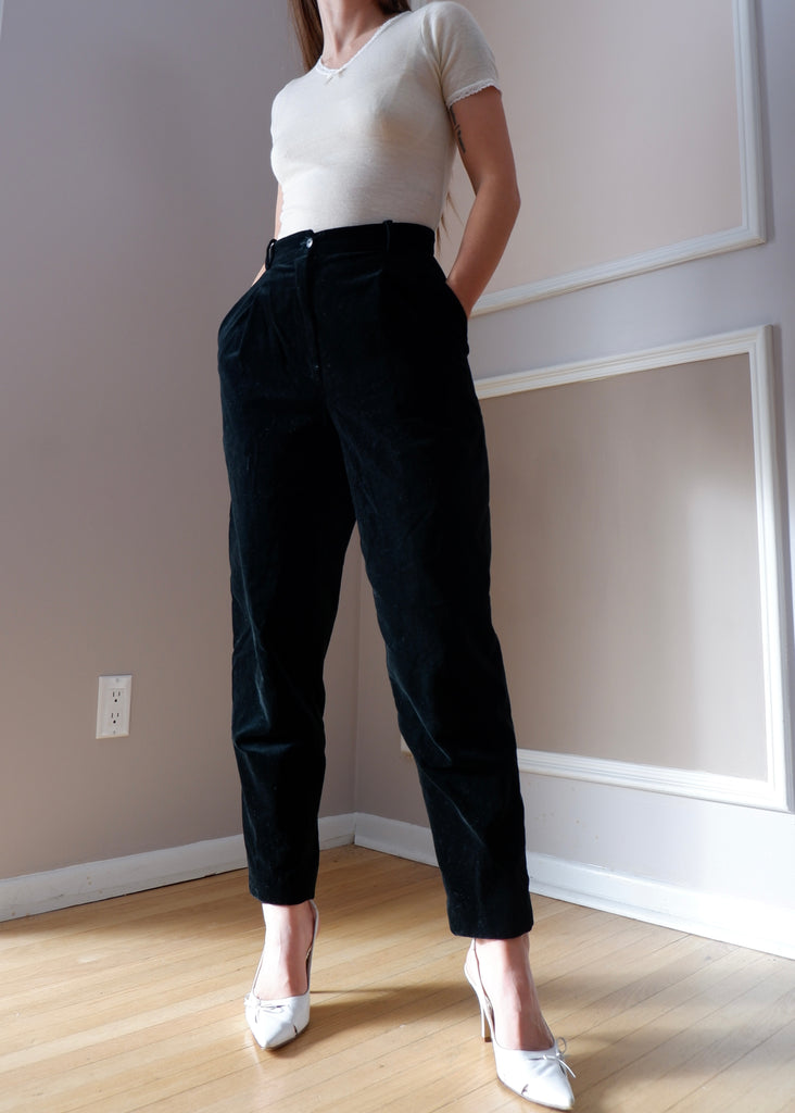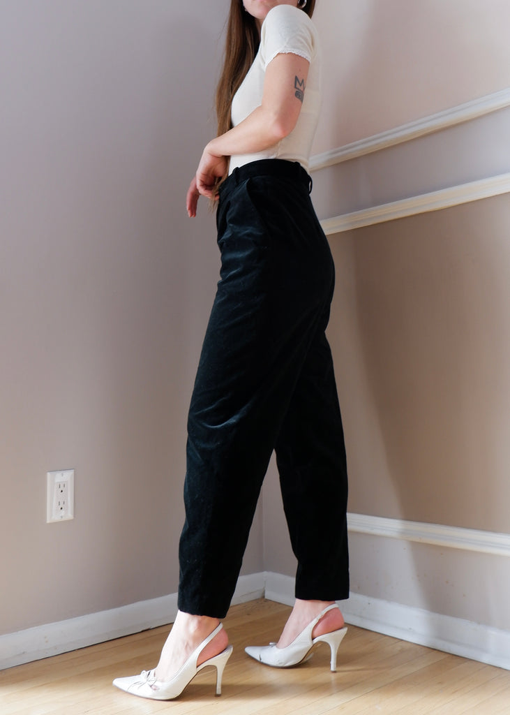 90s Holt Renfrew Black Velvet Trousers - 4