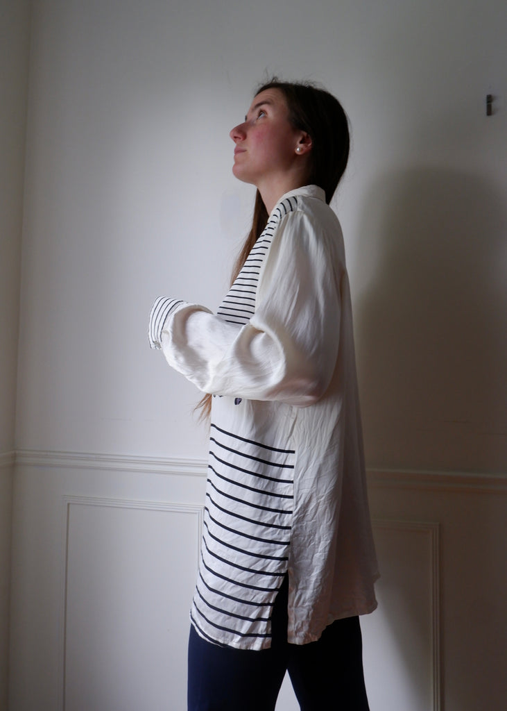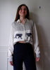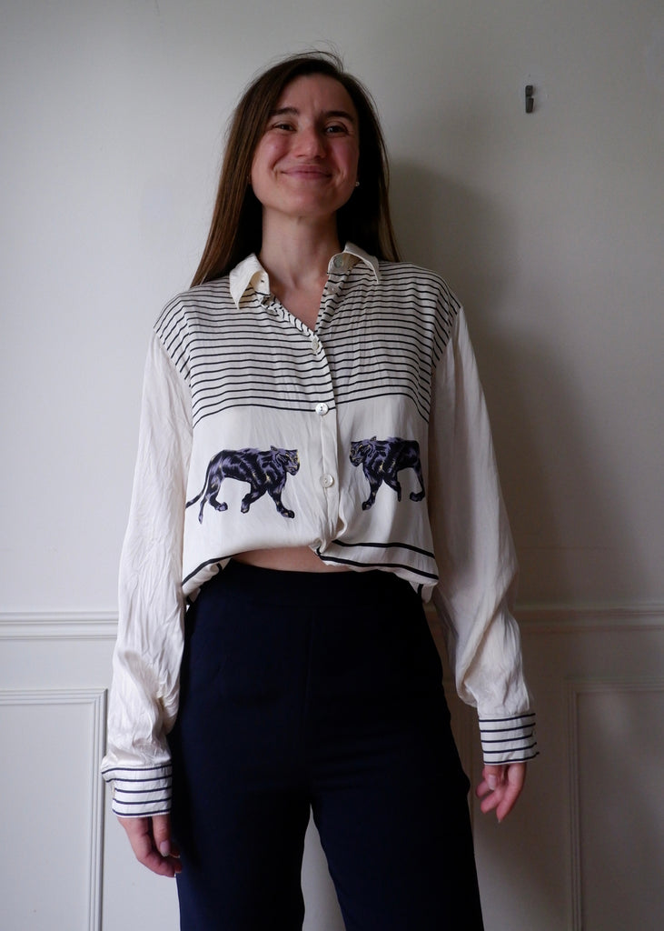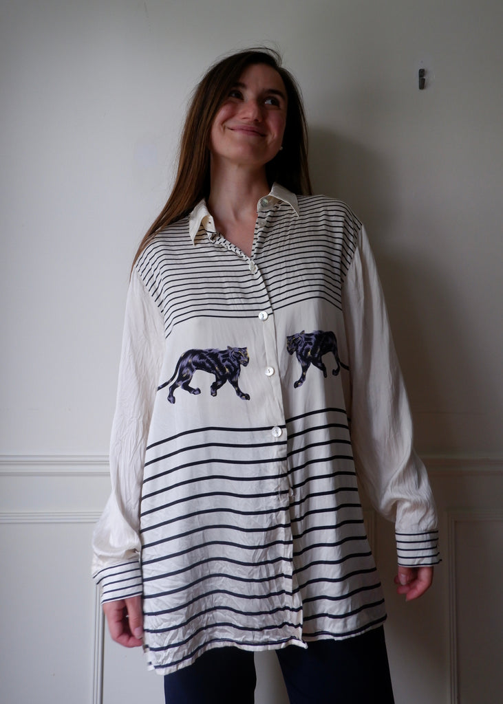 90s Pure Silk Puma Stripe Blouse - L/XL
