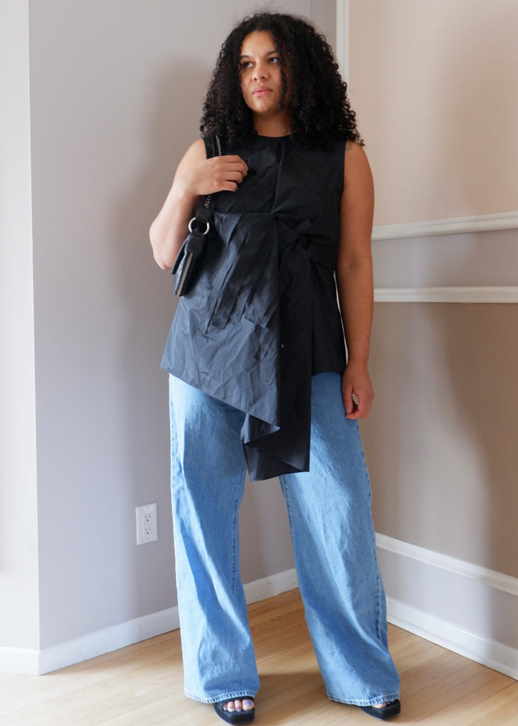 COS Black Asymmetrical Silk-Blend Blouse - M/L