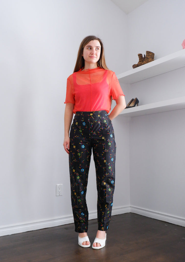 Embroidered 100% Silk Straight Leg Trousers - 6/8