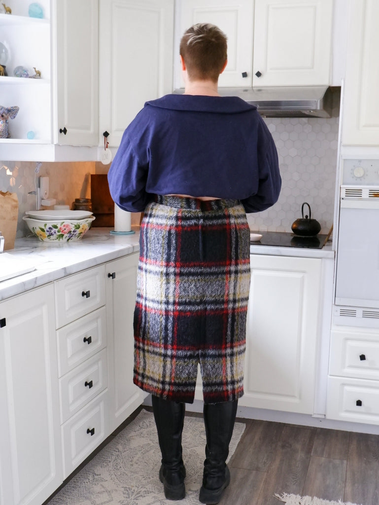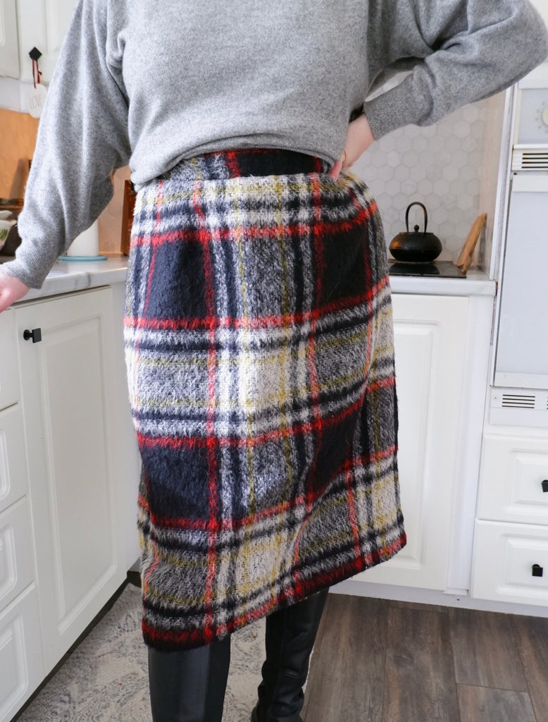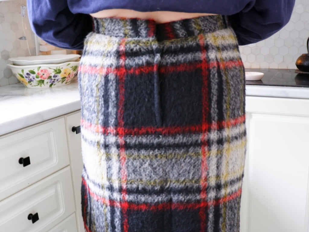 Handmade Grid Plaid Pencil Skirt - 16