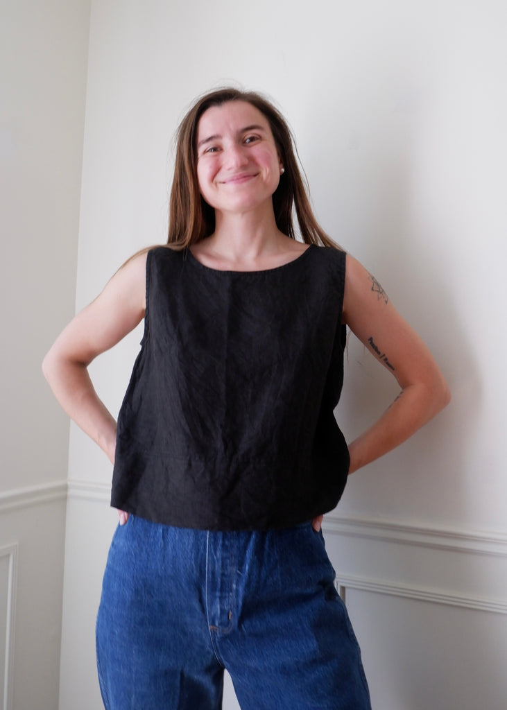 Linenfox Versatile Black Boxy Tank - S/M