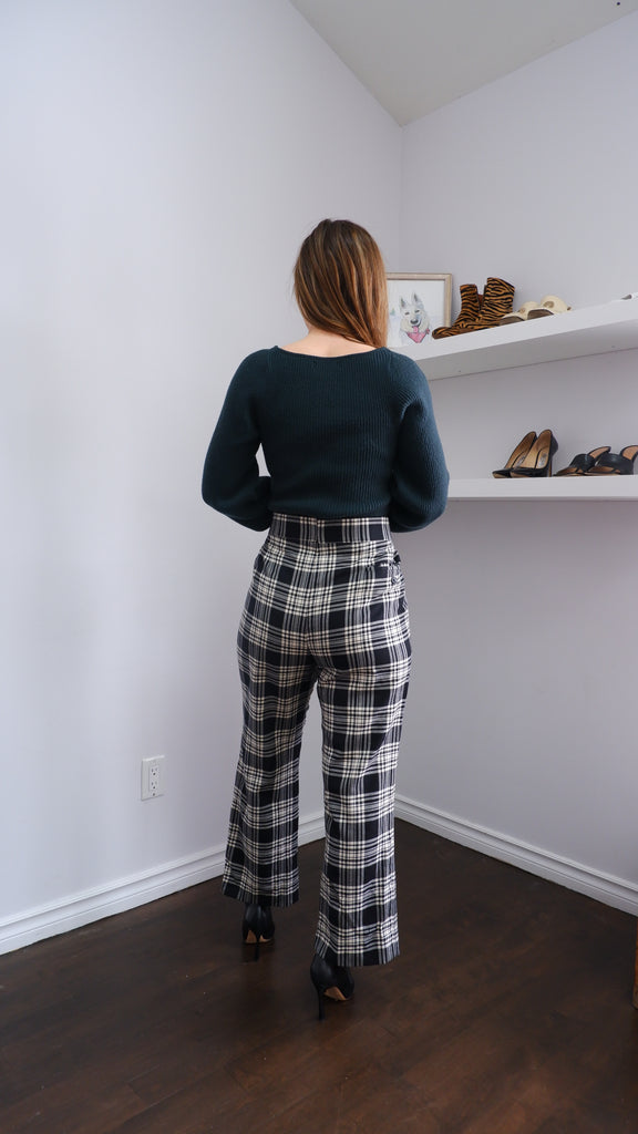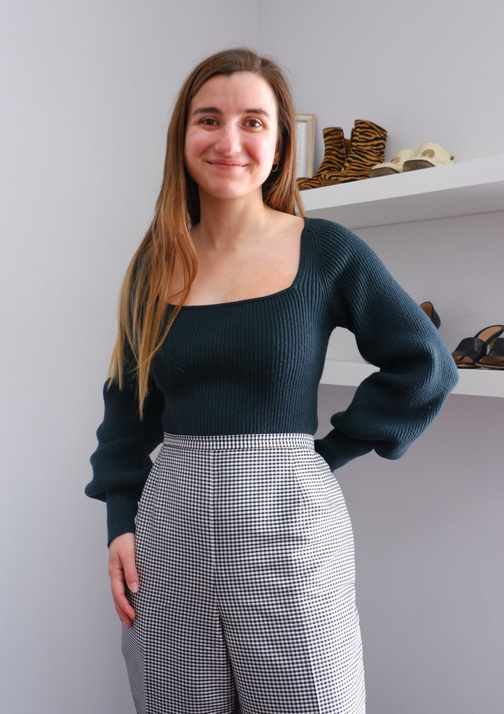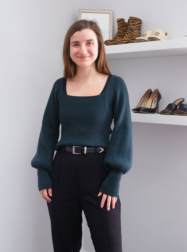 Oak & Fort Pine Green Square Neck Ribbed Sweater - M