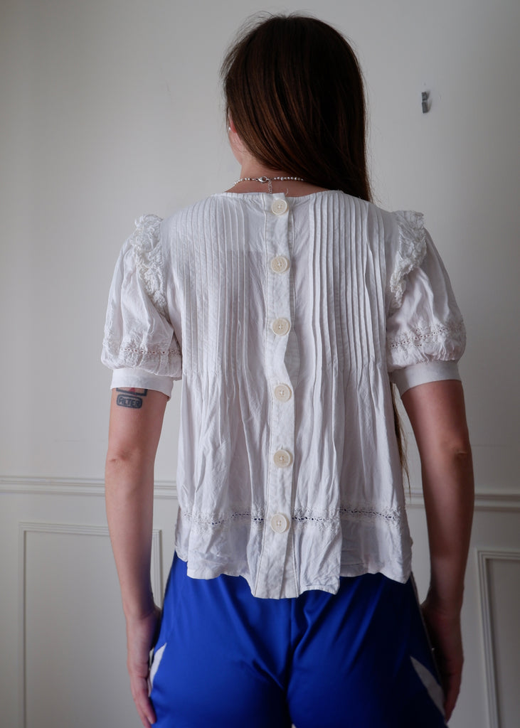 Prairie Linen-Blend Puff Sleeve Blouse - XS