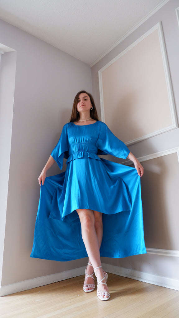 Sies Marjan Blue Silk Crepe Kaftan Dress - S