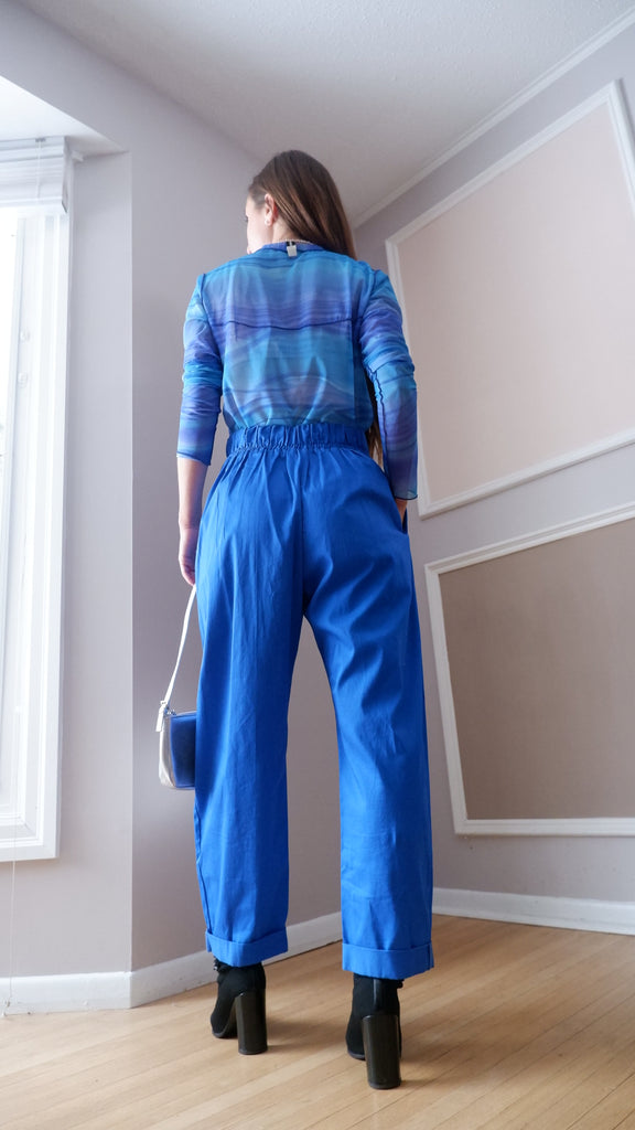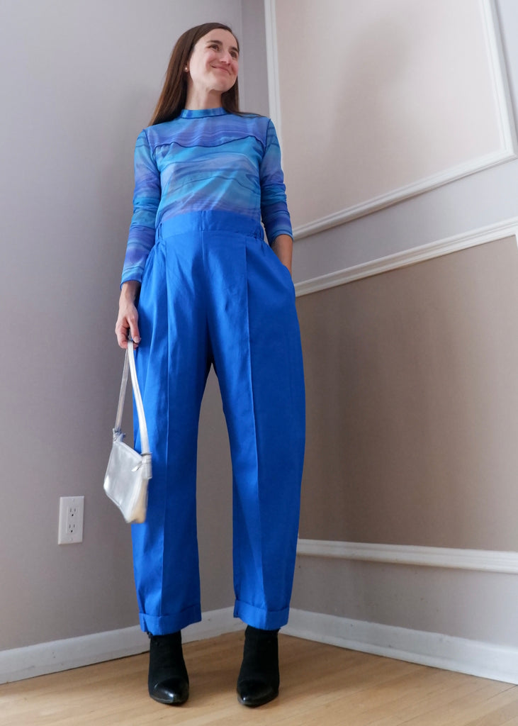 the fit is reminiscent of vintage men's trousers, meant to create a casually glamorous shape and feel.