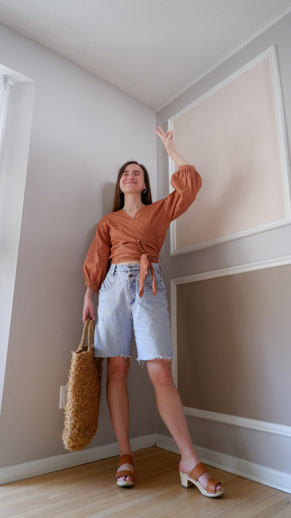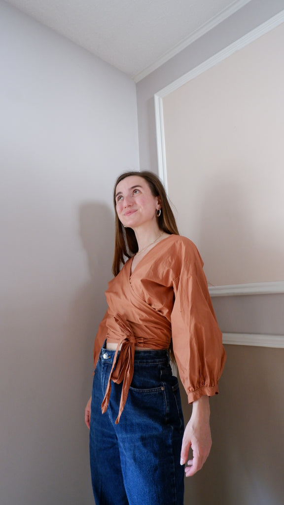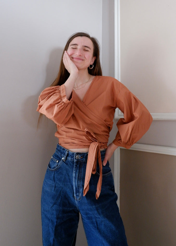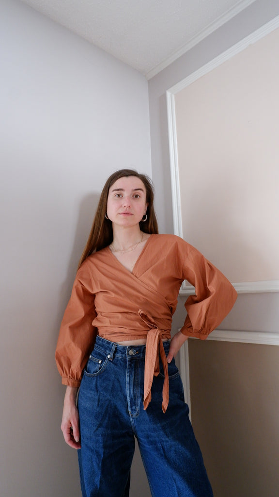 Ursa Minor Cinnamon Puff Sleeve Wrap Blouse - M