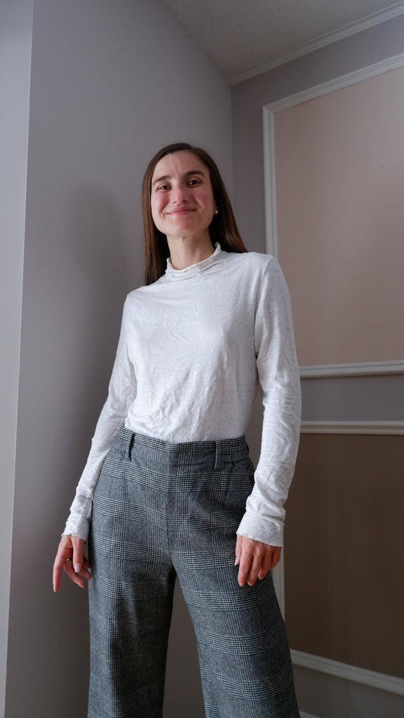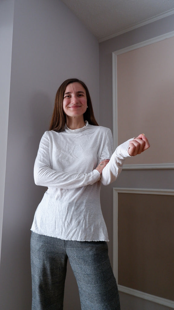 Vincetta Greige Lettuce Hem Mock Neck - XL