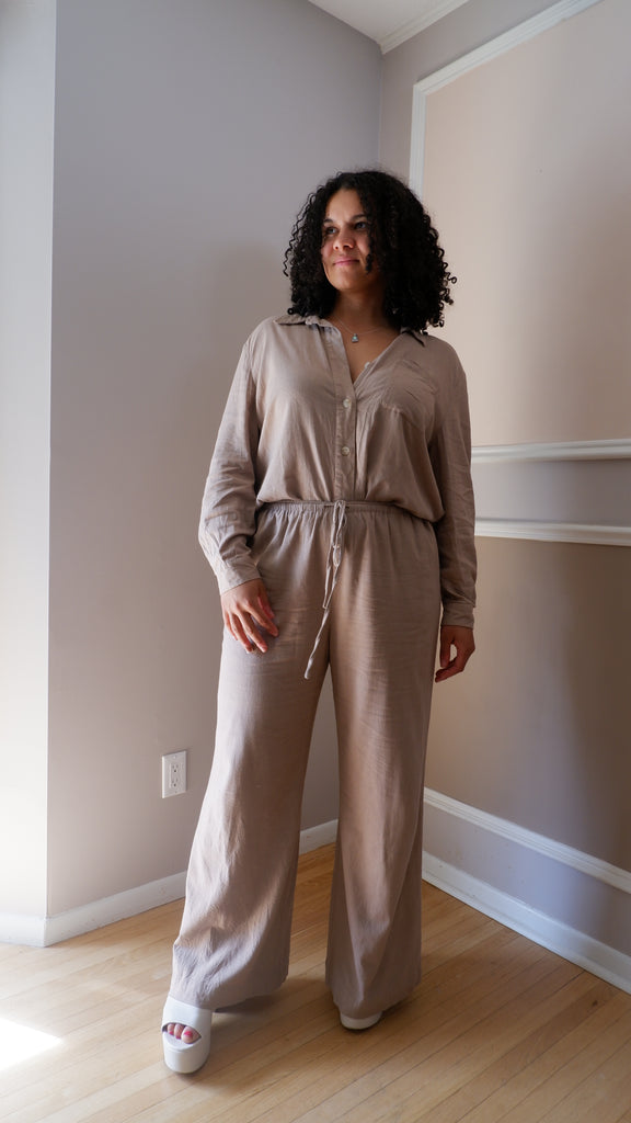 Wildflo Studio Taupe Wide Leg Drawstring Trousers - XL