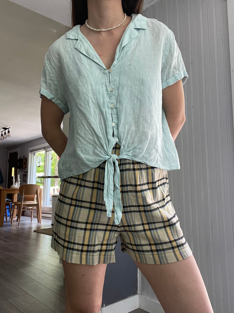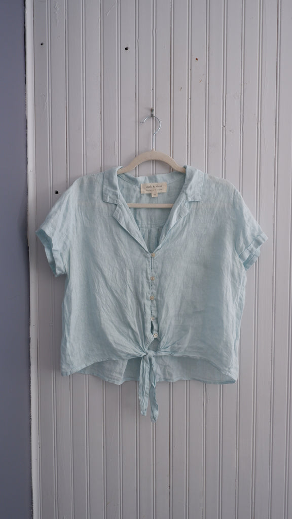 Cloth & Stone Ocean Tie-Front Linen Blouse - M