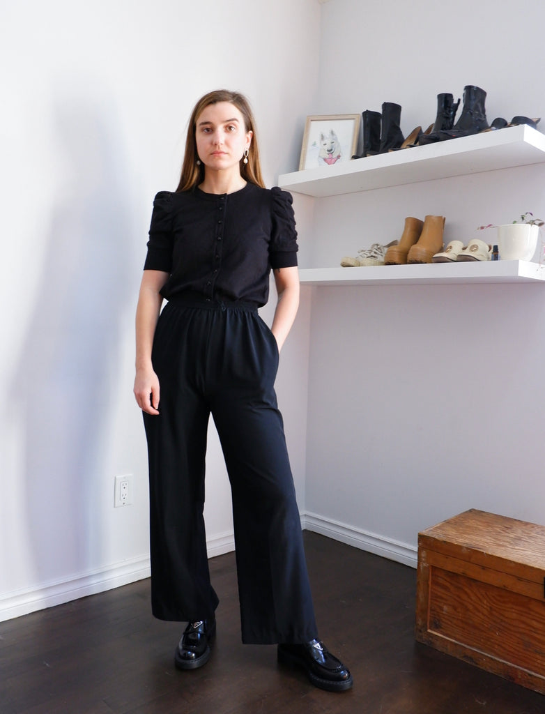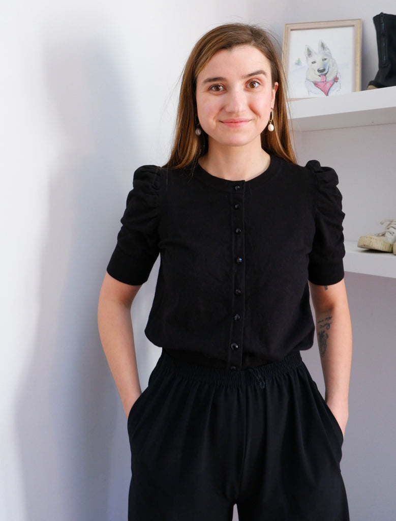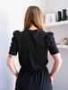 Y2K Ruched Puff Sleeve Micro Rib Sweater - S