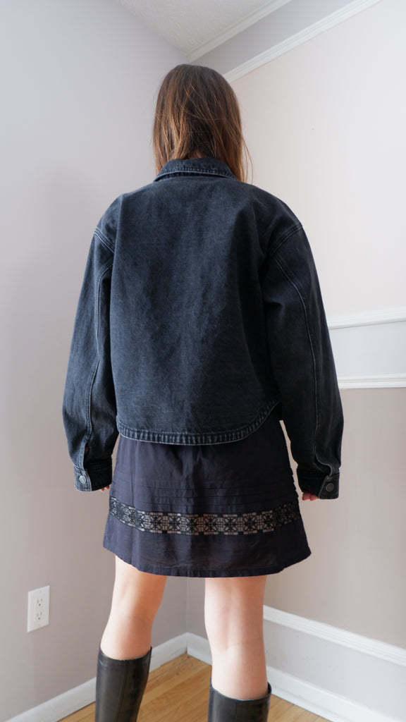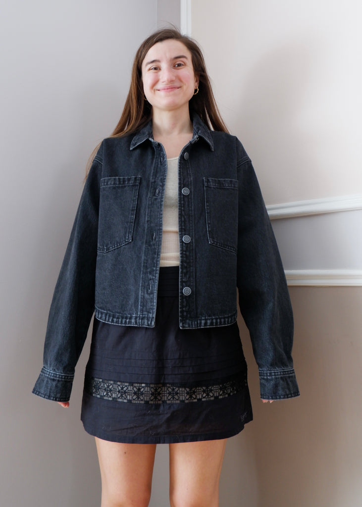 Z Supply Washed Black Cropped Denim Jacket - L